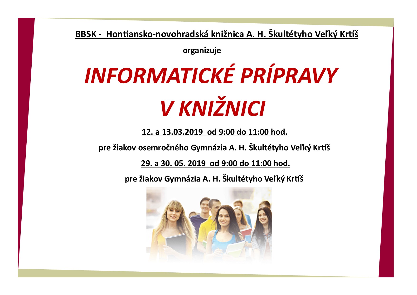 Prosíme používateľov knižnice o vyplnenie dotazníka určeného na mapovanie potrieb mládeže v Banskobystrickom samosprávnom kraji za účelom vytvorenia Krajskej stratégie práce s mládežou. Dotazníky sú určené pre mladých ľudí vo veku od 0 do 29 rokov žijúcich v Banskobystrickom samosprávnom kraji. Dotazníky prosím vyplniť do 10.1.2020.